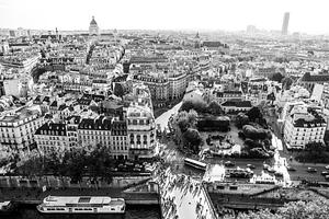 The Seine and the Left Bank of Paris are seen from the roof of Notre Dame, in a view that was captured before the fire.