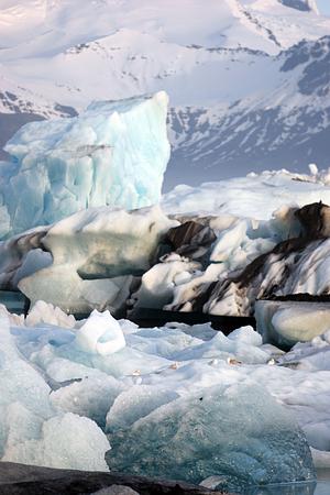 Zoomed in on the details of birds at rest during the early morning at Iceland's Jökulsárlón lagoon.