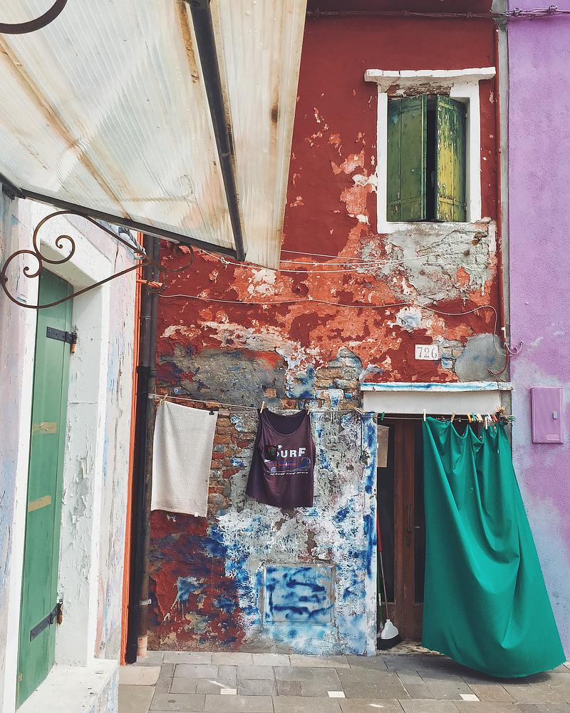 Meant to be part of a set, this doorway on the Venetian island of Burano is a colorful accompaniment to a wall gallery.